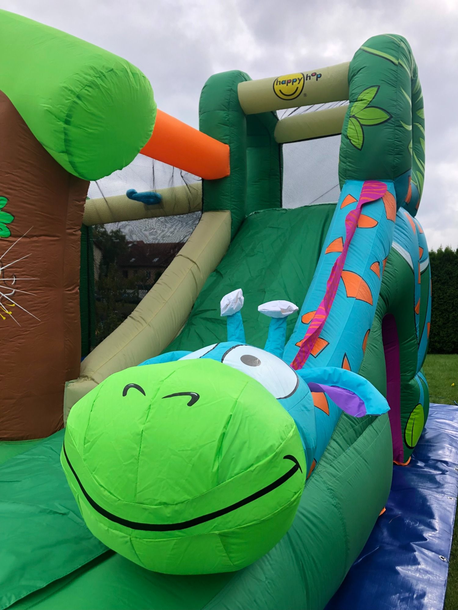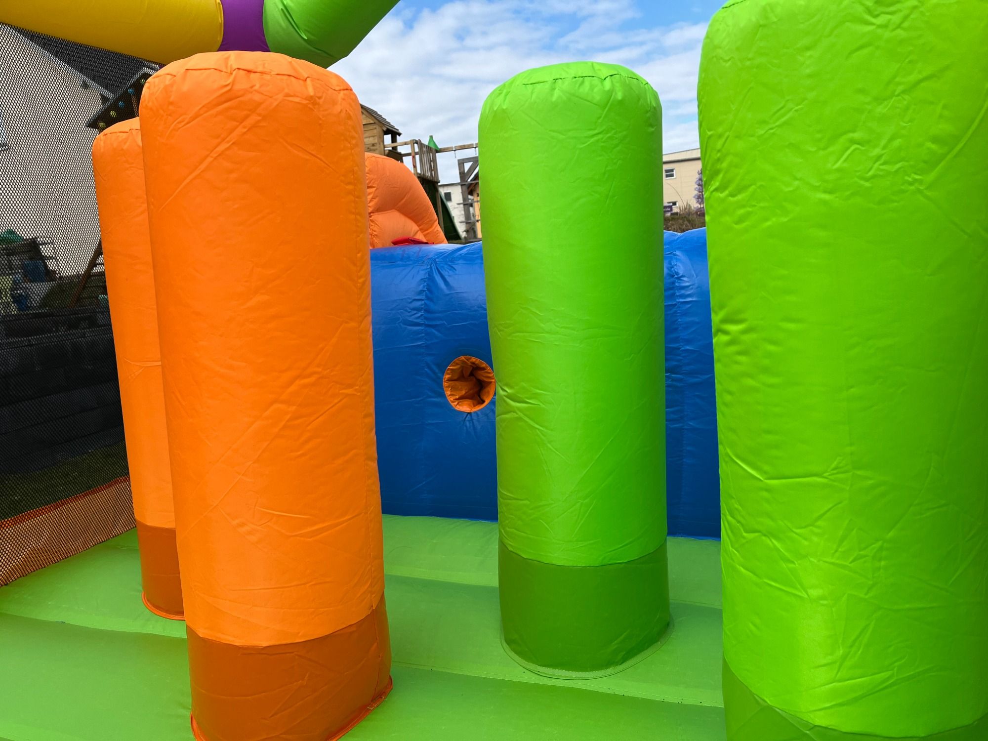 Leuchtende Kinderaugen beim Anblick einer Hüpfburg,