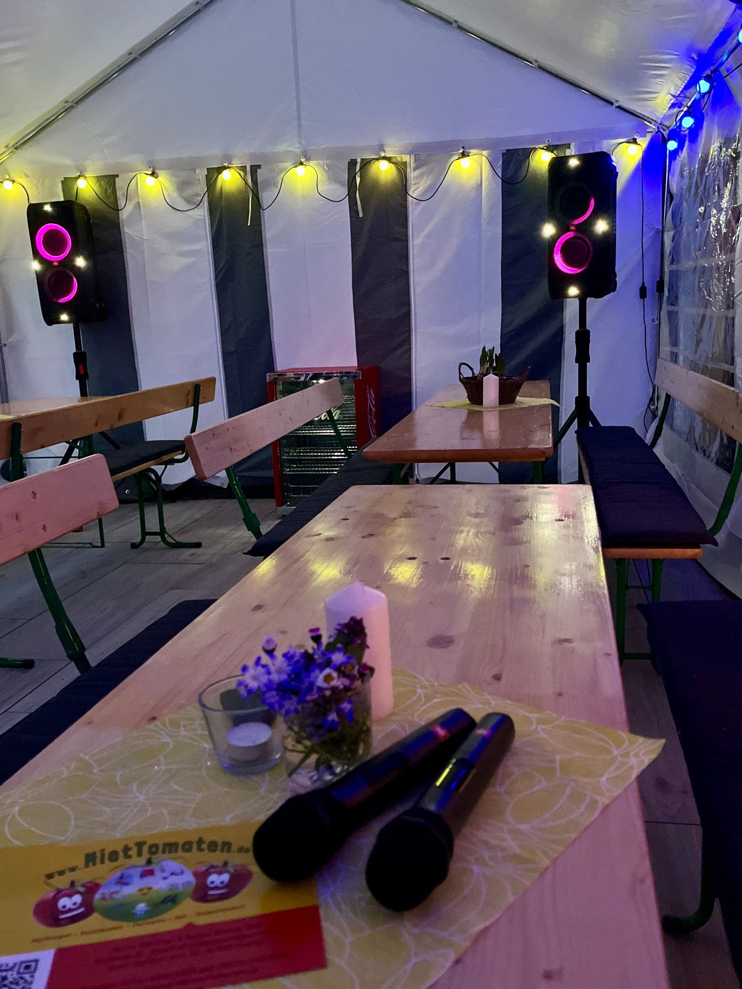 - ca. 64 Stehplätze oder ca. 40 Sitzplätze durch 5 Biertischgarnituren